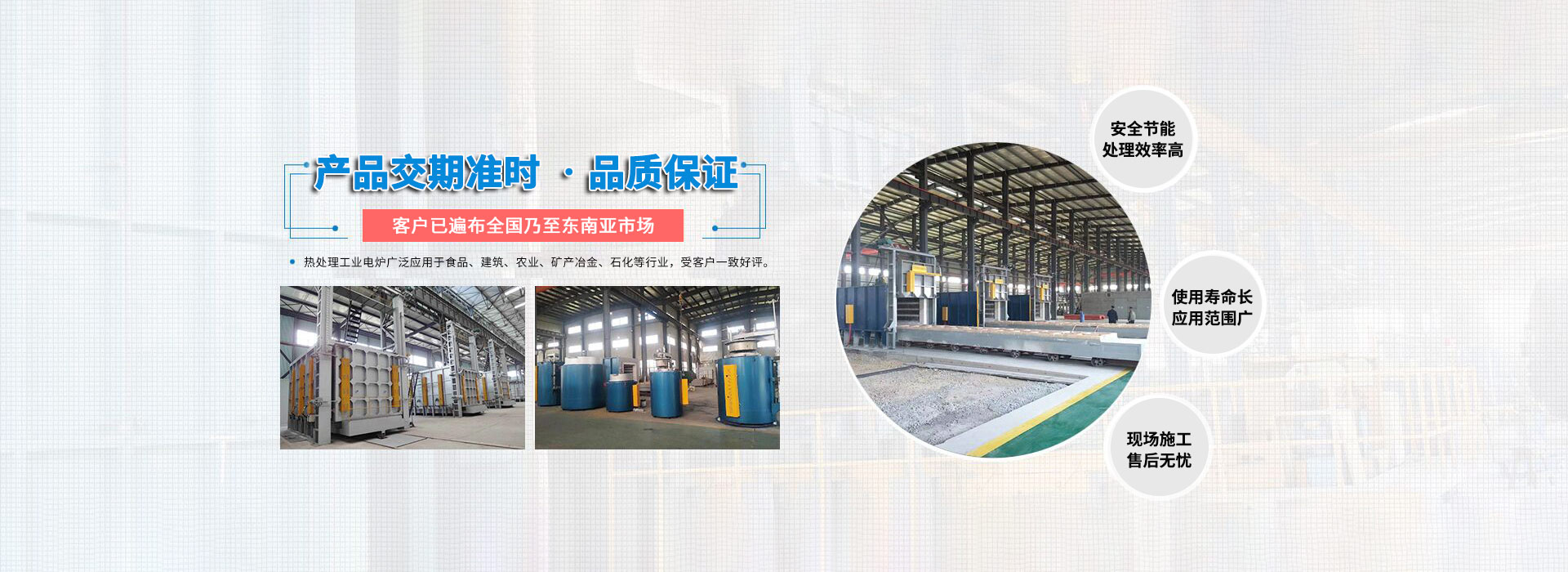 公司現(xiàn)有業(yè)務(wù)包括新能源電池?zé)Y(jié)爐、連續(xù)式金剛石鋸片燒結(jié)爐、臺(tái)車爐、熱風(fēng)循環(huán)爐、井式爐、罩式爐、管式爐、網(wǎng)帶爐、連續(xù)式滾筒爐、輥底爐、推桿爐、可傾式滾筒爐、鋼帶爐、鋁合金淬火爐、時(shí)效爐、坩堝爐、熔鋁保溫爐等??蓪?duì)工件進(jìn)行以電、天然氣、煤氣、工業(yè)燃油等為介質(zhì)的真空、保護(hù)氣氛、控制氣氛等各種自控?zé)崽幚怼?/p>